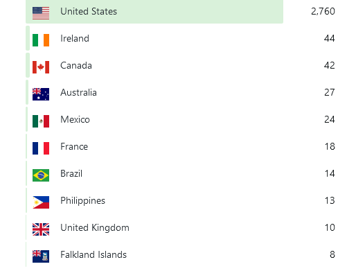 I notice the number for NZ has crept up to 8 – on a par with the Falkland Islands, and they are further south than us. They must enjoy more Scotch than we do in NZ. 🙂