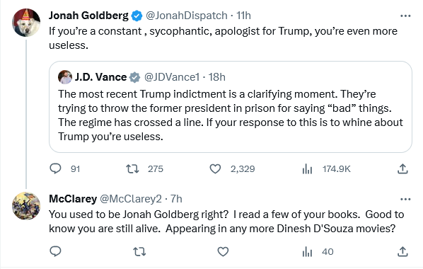 The most awkward part of this is that Goldberg’s late mother was not an antagonist of Trump. The other is that few 53 year old men have an occupational life and standard of living more contingent on patronage and connections. If you’re in that sort of glass house, you should be sparing referring to other people as ‘useless’.