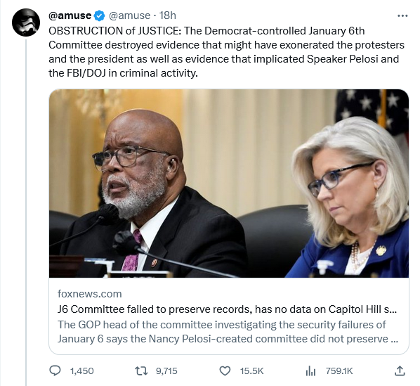 You missed the point TJ. Why was the J6 committee hiding information? They were a Congressional committee. They had a legal duty to preserve all information which they received. That the J6 committee was a lynch mob with no opposing voices on it, that is simply a statement of fact.