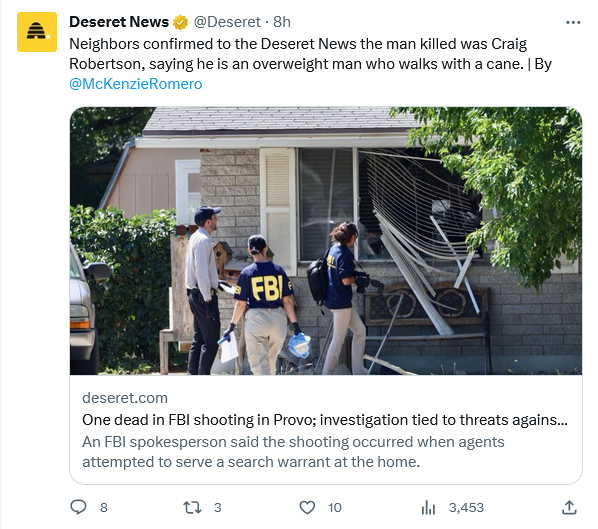 Apparently the FBI had him under surveillance for six months. They could have arrested him at any time when he was outside hobbling on his cane. Instead they staged a dramatic dawn raid for a photo op. A man was killed for a photo op.