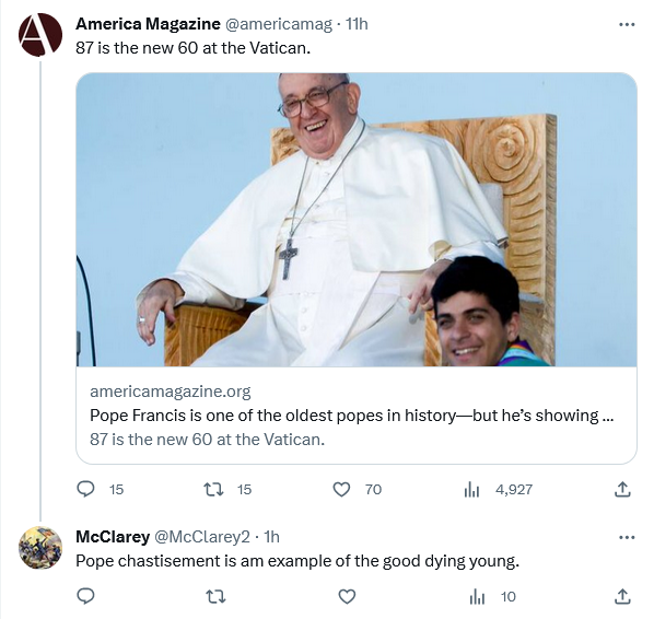 Bonus:Â The Pope’s informal theme song, since he hates traditional Catholicism with the undying fury of a thousand suns: