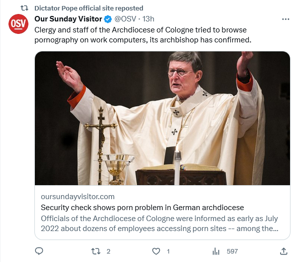 Go here to read the story. The porn is disastrous, but it also illustrates how few of the Chancery parasites are working. As Pope John XXIII responded when asked about how many people worked at the Vatican: