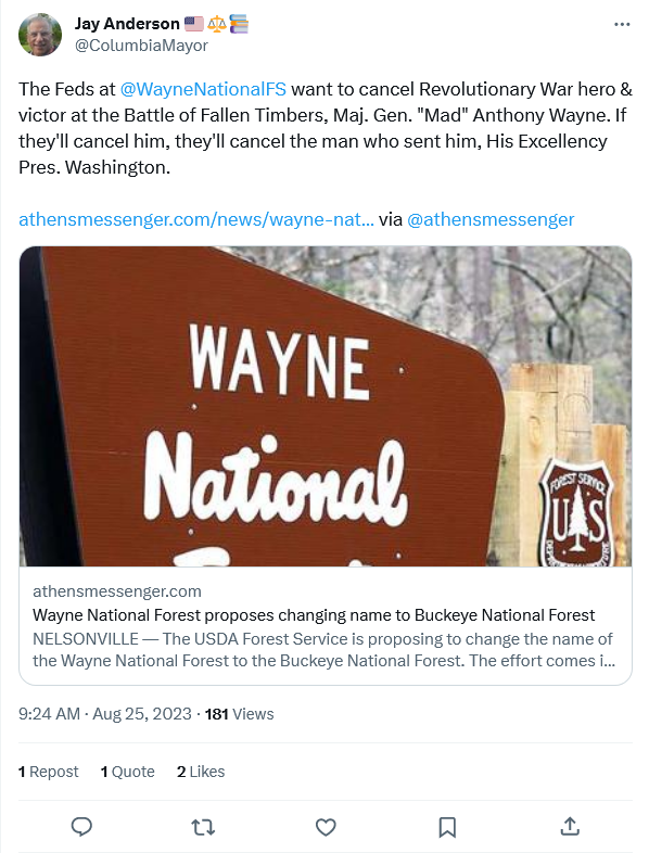 Something for the weekend.  Mad Anthony Wayne.  Wealthy businessman Anthony Wayne would now be unknown to history but for the Revolution. In that conflict he earned the nickname “Mad Anthony” and became one of Washington’s ablest combat generals. At the request of President George Washington he came out of retirement and led the infant United States Army to victory in the Northwest Indian War, the major military conflict of Washington’s two terms in office. Batman’s secret identity of Bruce Wayne was created by taking the names of Robert the Bruce and Anthony Wayne. In the DC comics Mad Anthony Wayne is an ancestor of Bruce Wayne and “stately” Wayne Manor was originally built by Anthony Wayne.