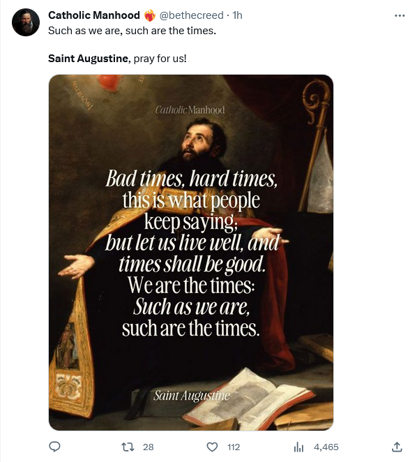 Saint Augustine was born into rotten times.  The Western Empire was tottering, and at his death in 430 his beloved city of Hippo was under siege by the Vandals.  Saint Augustine saw beyond his times and blazed a path for all men and women to follow into a Christian future.