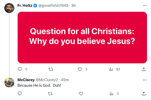 If the question was “Why do you believe Jesus when He says He’s God?”, then it would be a circular argument