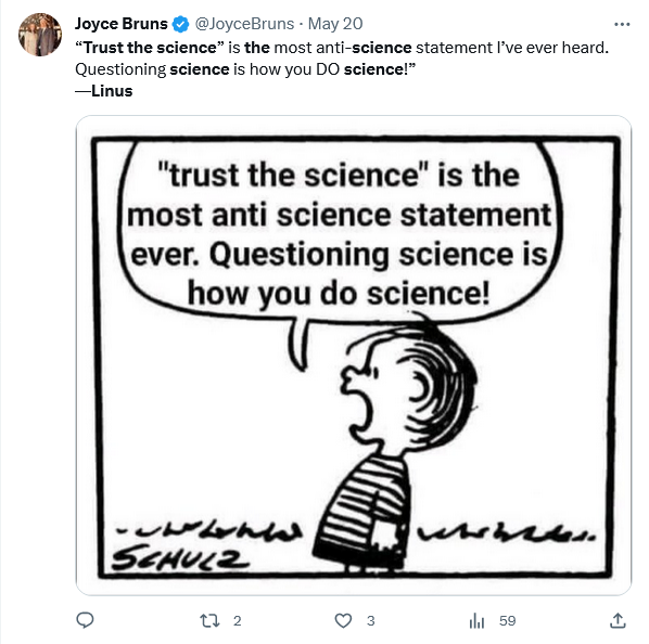 The people who say “trust the science” have no knowledge of the history of science, of the conflicts, the back and forth over the last 500 years. Instead of teaching children how to solve physics problems and balance chemistry equations, they should be taught the history of science. But teachers aren’t (generally) knowledgeable enough to do that.