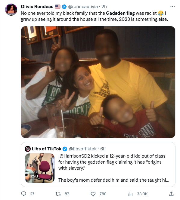 The teacher never mentioned gun patches. She only mentioned the Gadsden flag patch, repeatedly. She said if the boy removed the “Don’t Tread on Me” patch, he could return to the classroom. It sounds like they’re trying to rebrand their position to save face.