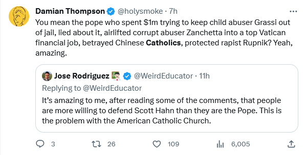 I think it’s selective hyperpapalism, Frank … I’d wager Mr. Rodriguez didn’t defend B16 so zealously.