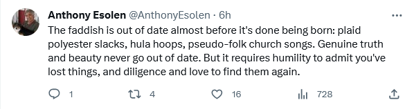 […] News & Punditry: Fads by Tony Esolen – Donald R. McClarey, J.D., at The American Catholic 4 September: Saint Moses, Old Testament […]
