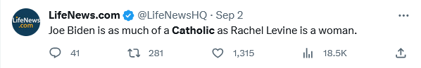 But Biden was a Catholic. So it’s more like Biden is as comfortable being a Catholic as Levine is comfortable being a man.