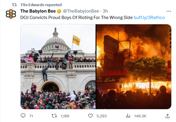“Let me be perfectly clear. We love rioting and lawlessness, but rioting that doesn’t involve BLM, Antifa, or radical Communist pedophiles throwing Molotov cocktails at small businesses will not be tolerated,” said Attorney General Merrick Garland in his charmingly raspy little voice. “These sick criminals dared to riot on behalf of political causes we don’t like, and for that, they must face severe justice.”