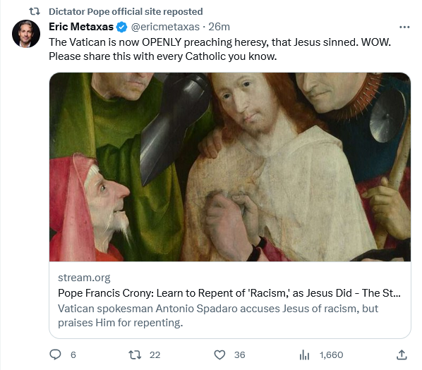 […] News & Punditry: PopeWatch: Sinner Christ – Donald R. McClarey, J.D., at The American Catholic Catholic Orders in Rome Sheltered 3,600 […]