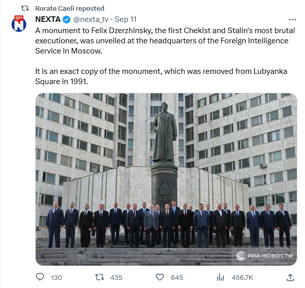 Let me if I have this right. The Russians are installing a new edition of a previously removed statue of Stalin’s chief executioner, and we in the States are talking about removing a monument to national Reconciliation ( North v. South) located in the Nation’s most hallowed graveyard. Who exactly did you say won the Cold War?