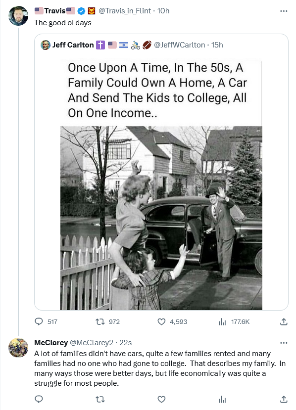 At least then both parties wanted Americans to prosper and bid for votes on that basis. The ideal was opportunity for every man by his own labor to support himself and his family. No welfare state, no barriers to wealth creation either.