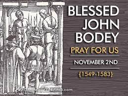 Blessed John Bodey, before he was hanged, drawn and quartered on November 2, 1583.