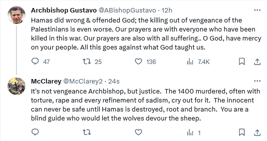 I’ve got nothing good to say about Archbishop Gustavo. The less I read of what he writes, the better. He will never be convinced till the Islamic terrorists for whom he feels so sorry makes him kneel to be decapitated.