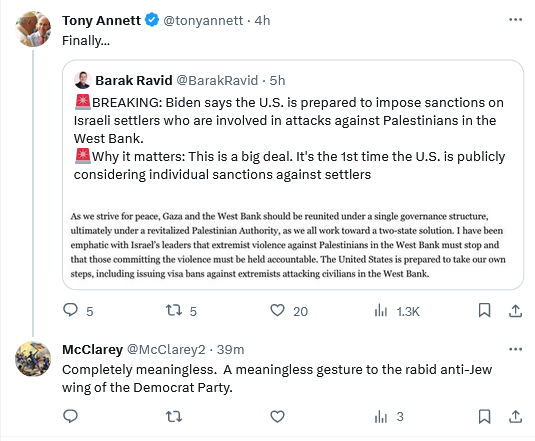 Do I get this right? Our consular service, which has a history of being unable and unwilling to undertake even cursory background checks on people applying for entry visas, is going to monitor Israel’s police blotter to identify from among all of those facing assault charges the single-digit share who are (1) living in settlements and (2) accused of attacking West Bank Arabs. And, then, they’re going to ‘sanction’ them by doing just what? Confiscating property they hold in the United States? Denying them tourist visas to visit relatives? Do the same sanctions apply to West Bank Arabs attacking Jews?