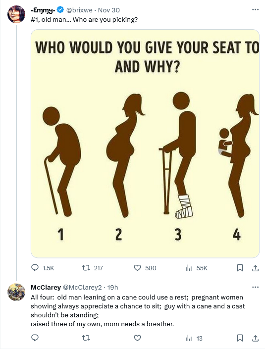 And the phone has been a real destructive tool in that people are either completely unaware or deliberately not noticing that someone less able than them, takes priority. Yes agree that young boys need to be taught chivalry. And all adults (men and women) need to be taught the importance of caring for those less able than themselves. I worry that we are so busy in this day and age that it’s at the bottom of our priorities.