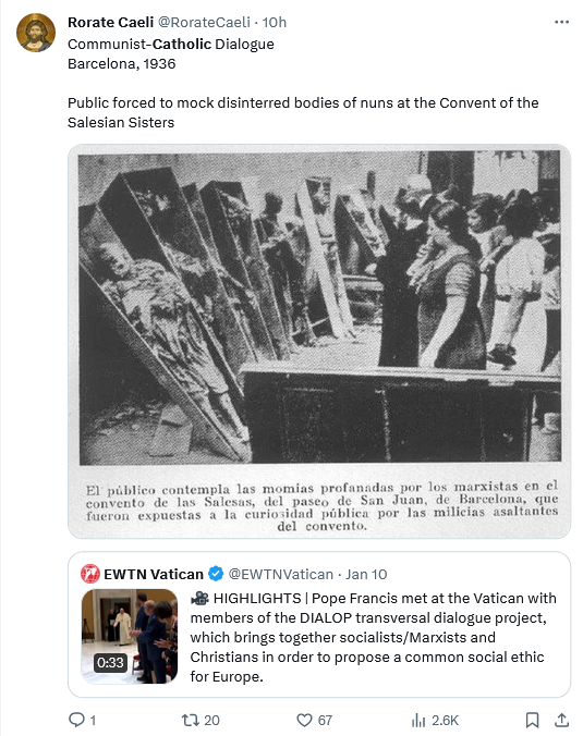 Every week we see in the Mission bulletin a Mass intention for Unity. I cannot see unity with the Democrats, Leftists and Marxists. The picture of the exhumed bodies of the Spanish nuns is a good reminder. We’ve seen in the US the footage of the destructive riots the last few years.