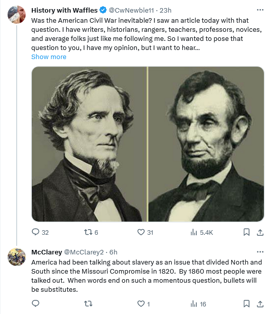 And the War came in Lincoln’s immortal phrase.  When it did, it was a culmination of a long series of events that took no great brilliance to conclude would end in War.  One of the saddest features of life in this Vale of Tears is how frequently we can discern a great disaster coming, and realize that we can do nothing to avert it.