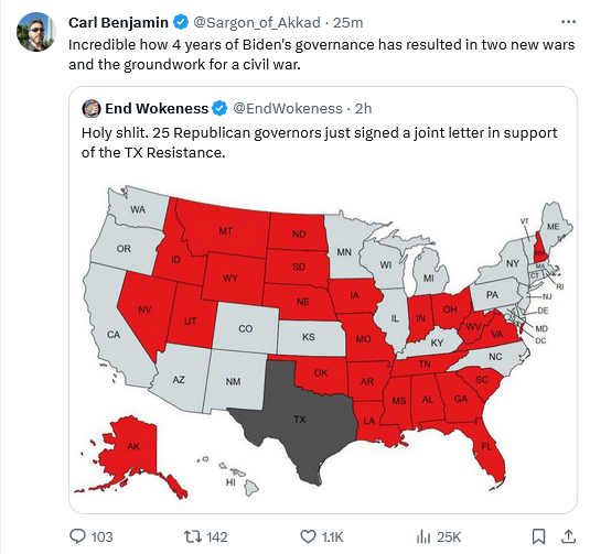 What will happen if shots are foolishly exchanged between National Guardsmen protecting Texas and Federal agents intent on enforcing Biden’s edicts? This is NOT a good situation.