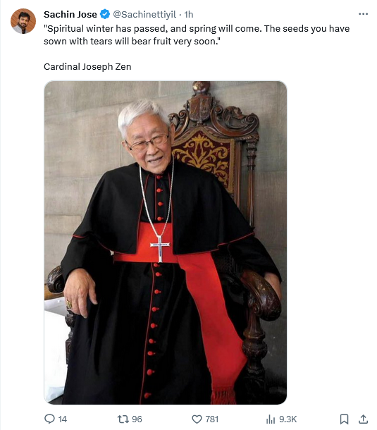 His hopefulness is beautiful. We need more Cardinal Zen’s. Gods Hope transcends everything.