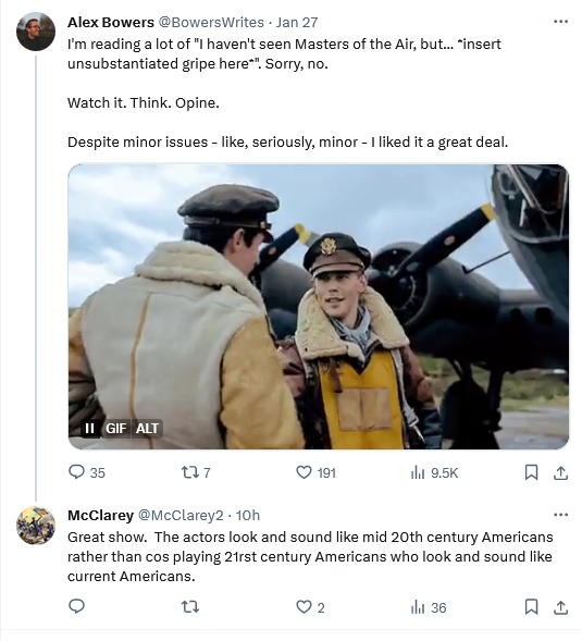 Haven’t seen Masters of the Air but I’m surprised by some of the casting. In particular Barry Keoghan who plays Lt Curtis Biddick. Disclaimer Keoghan recently starred in a series called Saltburn which has some utterly immoral and grose scenes in it performed by Keoghan. I haven’t watched Saltburn for this reason and don’t recommend anyone to.