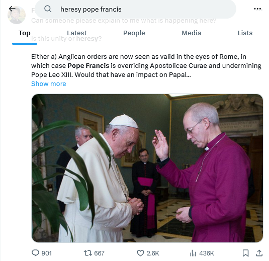 Can someone please explain to me what is happening here? Is this unity or heresy? Either a) Anglican orders are now seen as valid in the eyes of Rome, in which case Pope Francis is overriding Apostolicae Curae and undermining Pope Leo XIII. Would that have an impact on Papal Infallibility? Or b) Pope Francis is receiving a pontifical blessing from someone his Church declares to be a heretic. Would that mean Pope Francis is embracing heresy? Is there a more charitable interpretation?