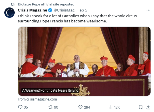 Indeed. A steady stream of Leftism, Heterodoxy, Indifference to crimes committed by the Pope’s allies topped off with endless mendacity. That the Pope phrases his ten or so memes in constantly the same way, has made this Pontificate an endless wasteland which we are all traversing. God grant us an end soon.
