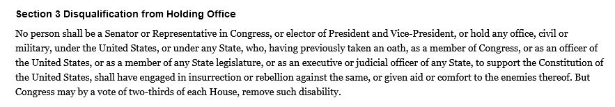 Trump’s attorney: Griffen’s case held that Section 3 is not self enforcing in the absence of enforcement legislation by Congress. Congress as a result passed the Enforcement Act of 1870, later repealed by it in 1948.