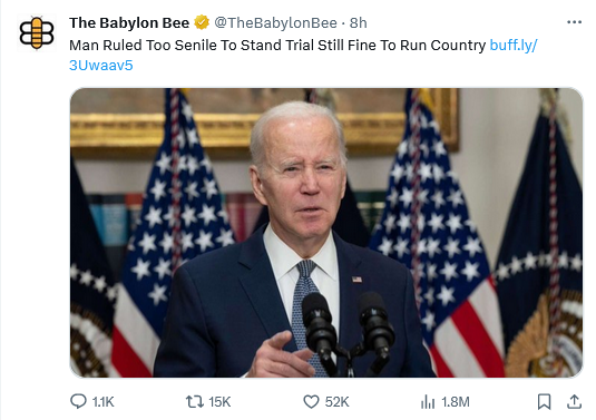 Go here to read the rest. This ceased to be funny long ago. Biden should be in a nursing home, not the oval office. He is in no condition to run a lemonade stand let alone the country. This jeopardizes all of us. Time to invoke the 25th Amendment.