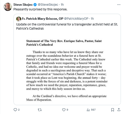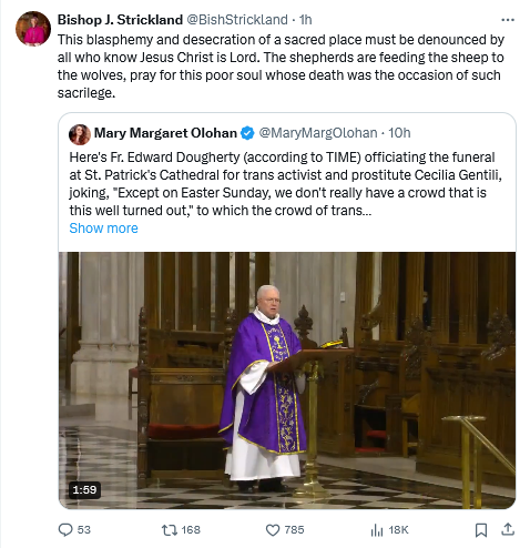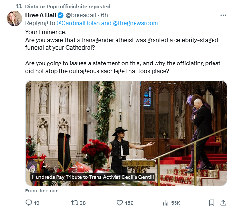 […] Mass of Reparation Offered at St. Patrick’s after ‘Scandalous’ Funeral – OSV NewsWell, at Least It Wasn’t a Traditional Mass – Don. R. McClarey, Esq./The American CatholicMother of All Whores: Trans Activists […]
