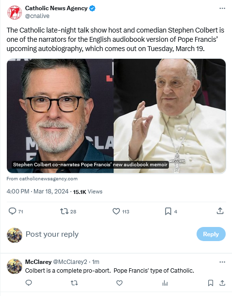 Appropriately enough, a comedian, and an unfunny one at that. First pope in history to have the narcissistic gall to publish an autobiography while still in office, and as far as is known, only the third pope ever to write one. The first, that of Pius II, entitled Commentaries, was published in the mid-16th Century, 120 years after his death. The second, also published posthumously, was that of John XXIII, who probably never intended for his personal journals to be published, as far as I can tell without reading it (which I have no intention of doing, FWIW. I’m too old to waste my time on it, to be blunt.)