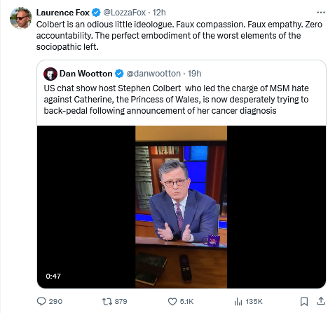 I don’t bother watching Colbert, or any of them. What did he say about her?