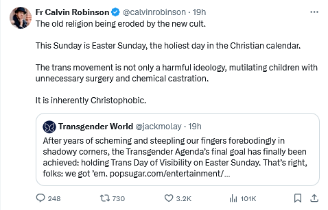 Christ is the Way, the Truth and the Life, however, and I can see how someone who is so deluded as to think they occupy a body of the wrong sex may, indeed, be irrationally averse to the Truth.