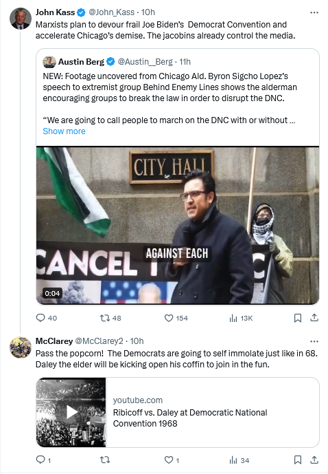 Watched the 68 debacle and am looking forward to the Hamas wing of the Democrat Party spreading chaos at the 24 convention!