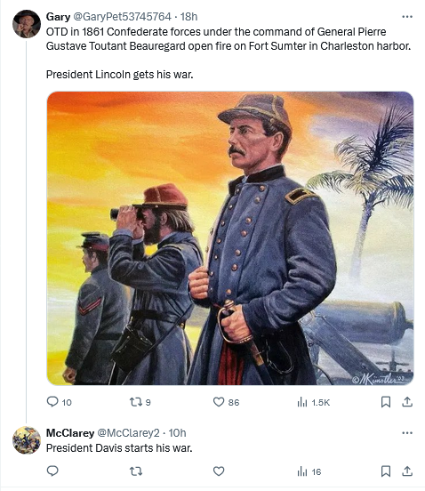 Personally, I refuse to endorse any view that doesn’t regard the leadership of both sides, both Davis and the sainted Lincoln, with a jaundiced eye. If the South was foolish for firing on Ft. Sumter, then Lincoln was equally foolish for goading his adversaries into doing so–as he hoped, so that like Bismarck a short time later (the affair of the Ems telegram) he could appear blameless in the whole matter of “who initiated hostilities.”