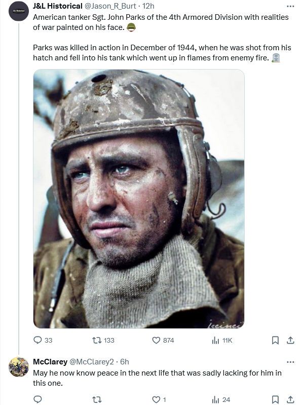 Tanker in Patton’s armored Division. He and his crew survived the battles, thanks be to God.
