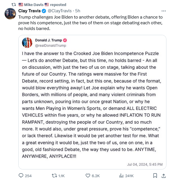 The late Rush Limbaugh used to say he could argue with half his brains tied behind his back. Well, Biden has all his brains behind his back. Let him debate Trump like that to prove he’s fit for the office.