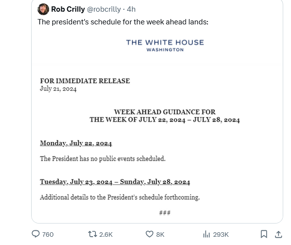 The Presidents Schedule for the coming week: