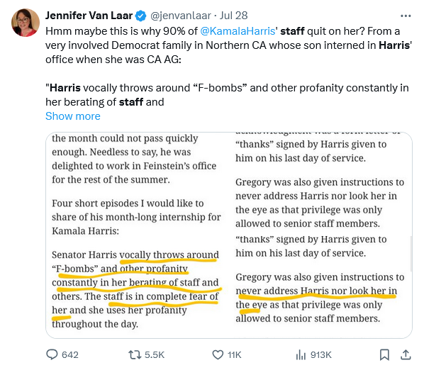 I suspect Harris’ general intelligence is adequate, but she’s been for decades ensconced in positions that should be well-above her pay grade. One might also suspect that her emotional state over the years has been regulated by (1) having grown up in a small family where (2) the children were less able intellectually than were the parents and (3) where she was the less able of the two children.