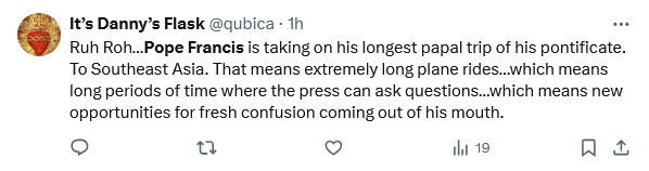 I was very surprised to read that the Pope said this. Very surprised.