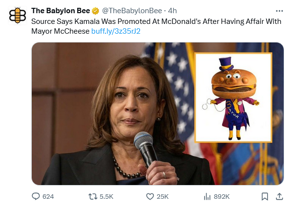 “It’s now clear how Kamala was able to rise through the ranks from a lowly crew member at the fry station to running the entire restaurant in spite of her glaring incompetence,” said Journalist Chet Cruggs, who broke the story. “This seems to be Harris’s modus operandi at every place she has worked.”
