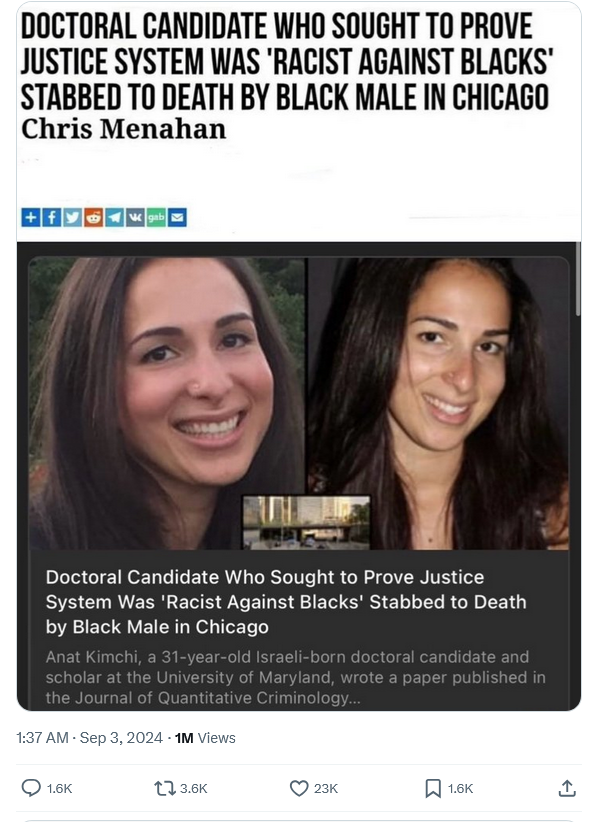 Go here to read the story of her murder. May her soul rest in peace, but feather heads like her are one of the reasons why violent criminals are allowed to roam free as the courts are compelled to let them go without bail, and cops are afraid of suddenly finding themselves in prison for life for doing their jobs.