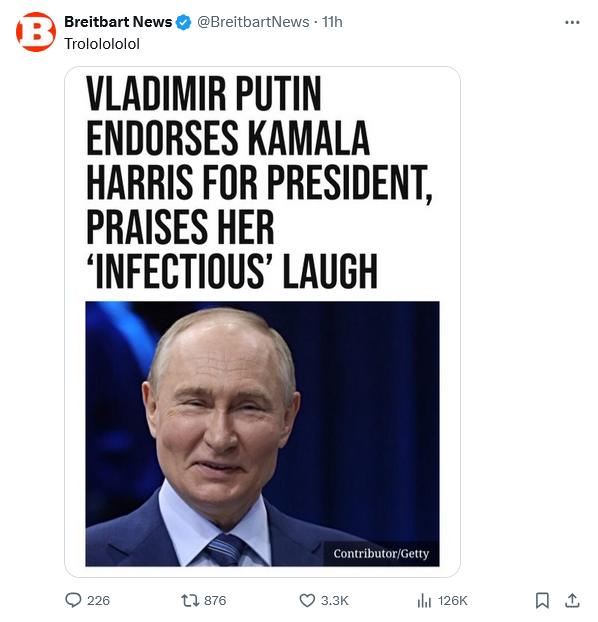 Putin does like playing mind games, but he is kidding on the square. Harris is a frightened woman with raging impostor syndrome. Her first reaction is to run from conflict. Putin would eat her alive. Trump on the other hand, well, there is a good reason why his Presidency was the most peaceful since that of Herbert Hoover.