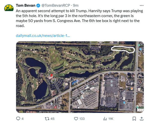 If there’s a subterranean connection between federal law enforcement and Crooks or federal law enforcement and Routh, the FBI is guaranteed to not find it. It’s a very reasonable hypothesis at this point that Routh was alerted by someone on the inside as to where Trump would be when.