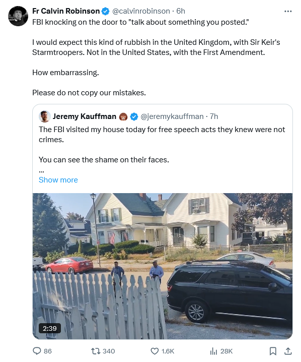Language advisory to the above video.  Bravo Mr. Kauffman.  The FBI minions were sent with the intent to intimidate him, and he turned the tables on them.  Note how their main concern was that he stop video taping them so they could have a “friendly chat” about something he posted, and Kauffman was having none of it.  On another note, I can recall when FBI agents used to wear suits and ties rather than dressing from a rag barrel.  Well, if they are seeking to trash the Bill of Rights I guess that is appropriate.  Unless we each stand up for our rights, they might as we be written on thin air.