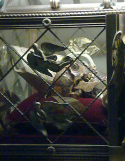 Monas died on 25 March (the exact year was not recorded) and his corpse was buried near the church of Saint Vitalis of Milan (Basilica Fausta), in the area where now stand the Basilica of Sant’Ambrogio. Under the episcopate of Arnulf II (998-1018), on 12 October (the year was not recorded), his relics were discovered and translated into the church of Saint Vitale near the Basilica Naboriana (now demolished). On 6 February 1576 his relics were translated by Saint Charles Borromeo to the Cathedral of Milan where they are today.[3]