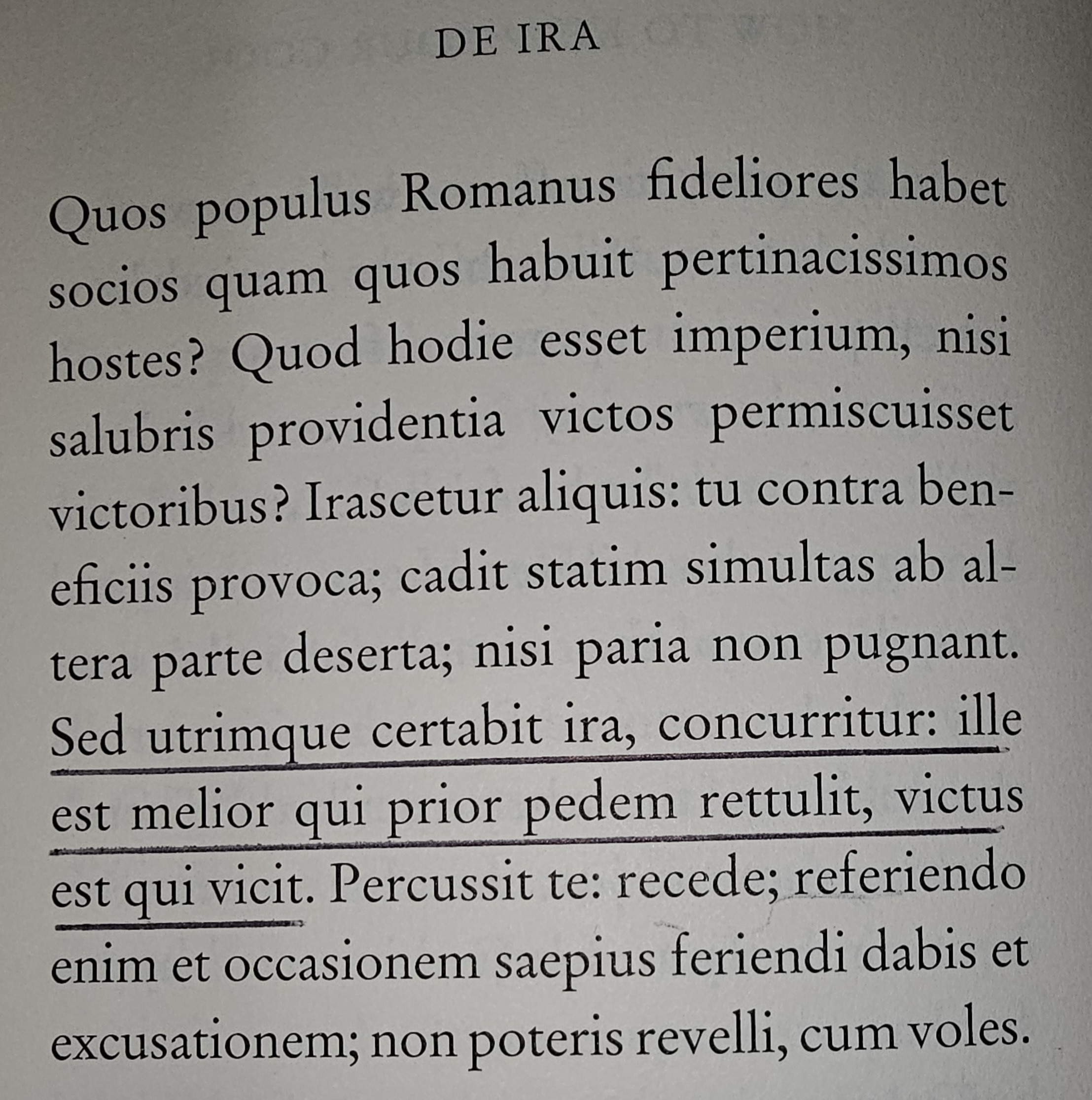 Sed utrimque certabit ira, concurritur: ille est melior qui prior pedem rettulit, victus est qui vicit.