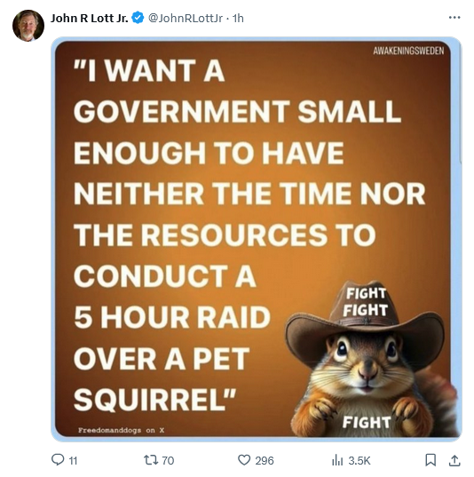 Ordinarily I’d be opposed to the government going after people’s pets, seems like overreach, but this is a squirrel we’re talking about! They’re born bad! Sure, he looked cute and all, but watch the videos … He’s always eyeing the gas stove, messing with electrical wires … He was on the verge of deliberately blowing this young, entrepreneurial couple sky high!